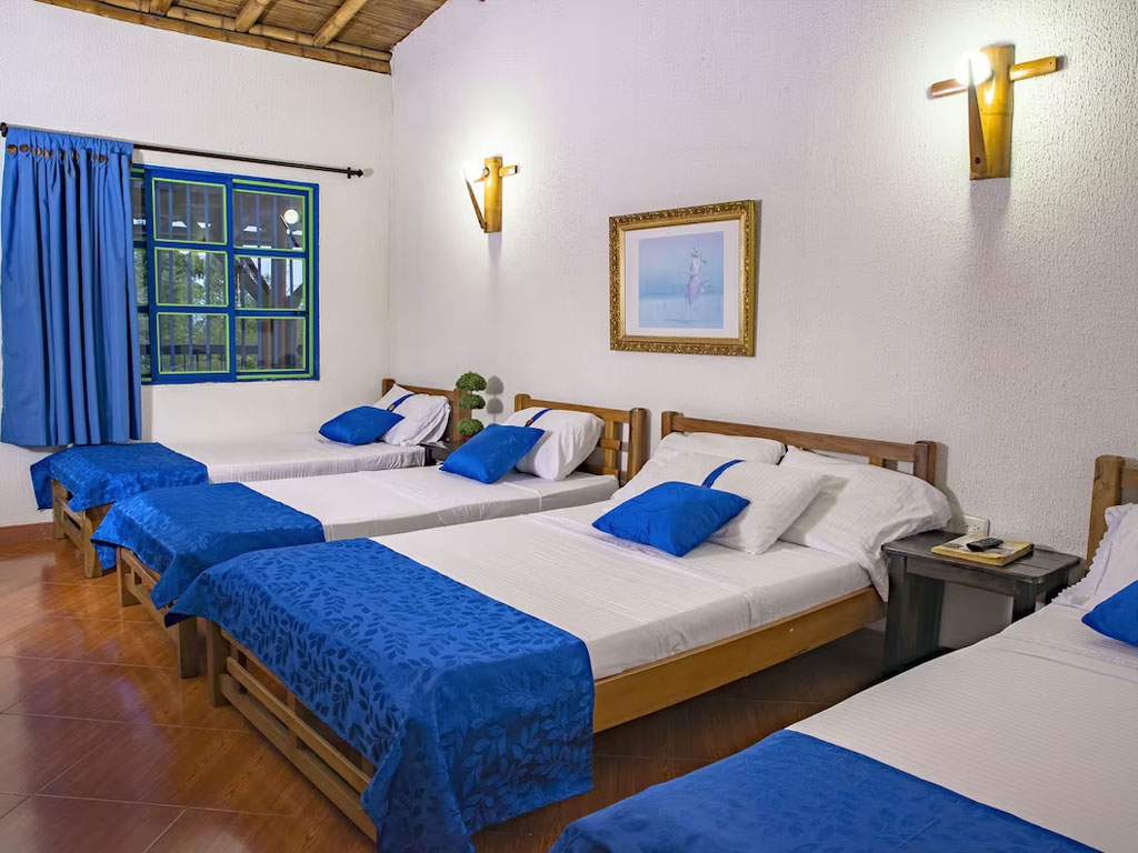 Piscina, wifi, parqueadero, aire acondicionado, mini bar, toallas, caja seguridad